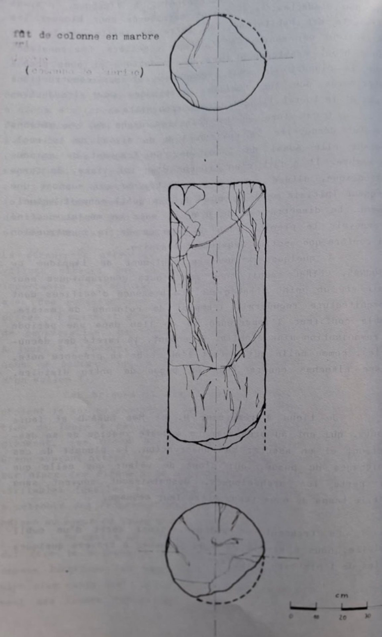 - Plusieurs fragments de colonnes romaines en marbre, dont une de belle posture, ont été retrouvés lors des travaux d’assainissement en 1963. Cette colonne, retrouvée chez un privé, est conservée par celui-ci.