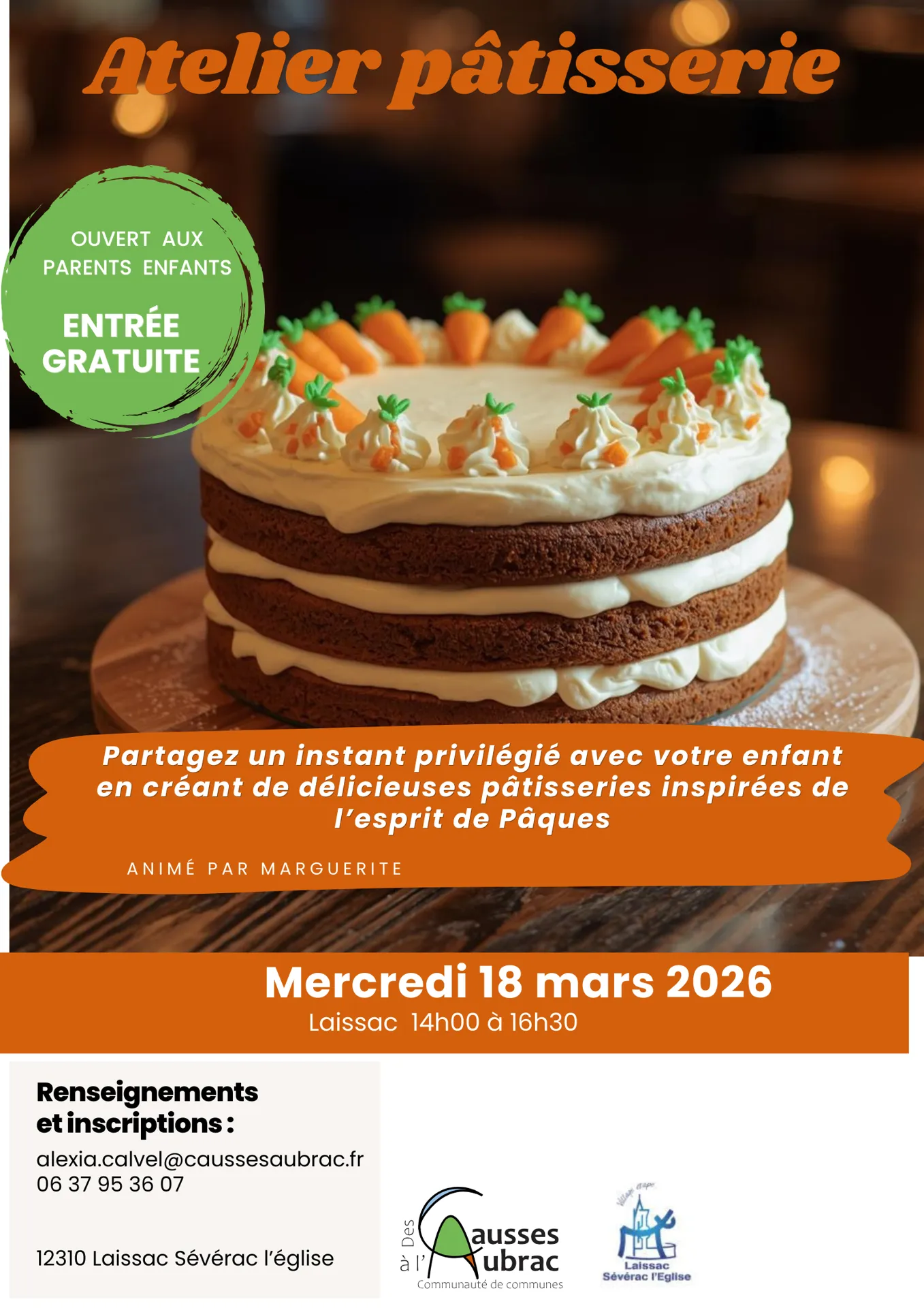 Atelier ouvert à tous : Venez vous initiez à la pâtisserie. Animé par Marguerite. Places limitées. Inscription obligatoire : 06 37 95 36 07 ou alexia.clavel@caussesaubrac.fr